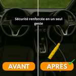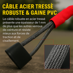 Facile da installare in 3 secondi, è adatto alla maggior parte dei veicoli (SUV, furgoni, city car, ecc.). La sua guaina colorata attira l'attenzione dei ladri per un effetto deterrente immediato, mentre l'acciaio spesso resiste a strappi e cesoie.