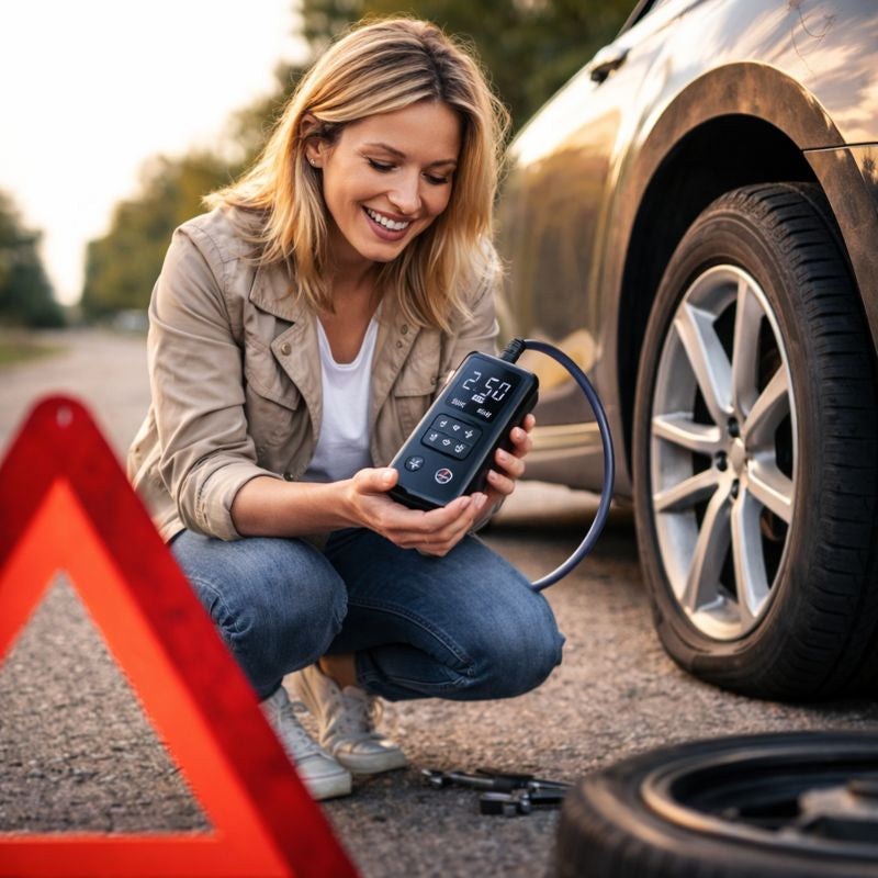 Mi ha aiutato una sera con un pneumatico quasi a terra. Facile da usare anche sotto stress, davvero rassicurante da avere in auto.