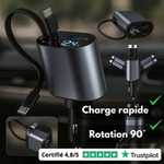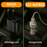 Caricabatterie da auto retrattile 4 in 1: ultra potente da 120 W con display LED