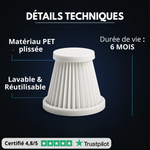 Lavabili con acqua e completamente riutilizzabili , costituiscono una soluzione ecologica ed economica . Ogni filtro ha una durata media di 6 mesi , a seconda della frequenza di utilizzo. L'installazione è semplice e veloce, così potrai avere l'aspirapolvere sempre pronto all'uso.