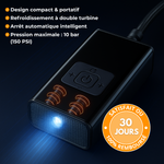 Dotato di uno schermo LED ultra-leggibile e di un manometro di precisione , questo compressore garantisce un gonfiaggio ottimale ogni volta, garantendo una guida sicura. La sua batteria al litio ricaricabile da 2000 mAh fornisce un'alimentazione sufficiente per gonfiaggi multipli, senza il fastidio di un cavo ingombrante. La ricarica USB consente una facile ricarica a casa o in auto.