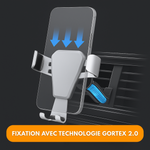 Questo supporto per telefono da auto si fissa facilmente alla bocchetta dell'aria e si adatta alla maggior parte degli smartphone grazie al suo sistema di bloccaggio automatico. Mantiene il telefono saldamente, anche in caso di curve strette o frenate improvvise.